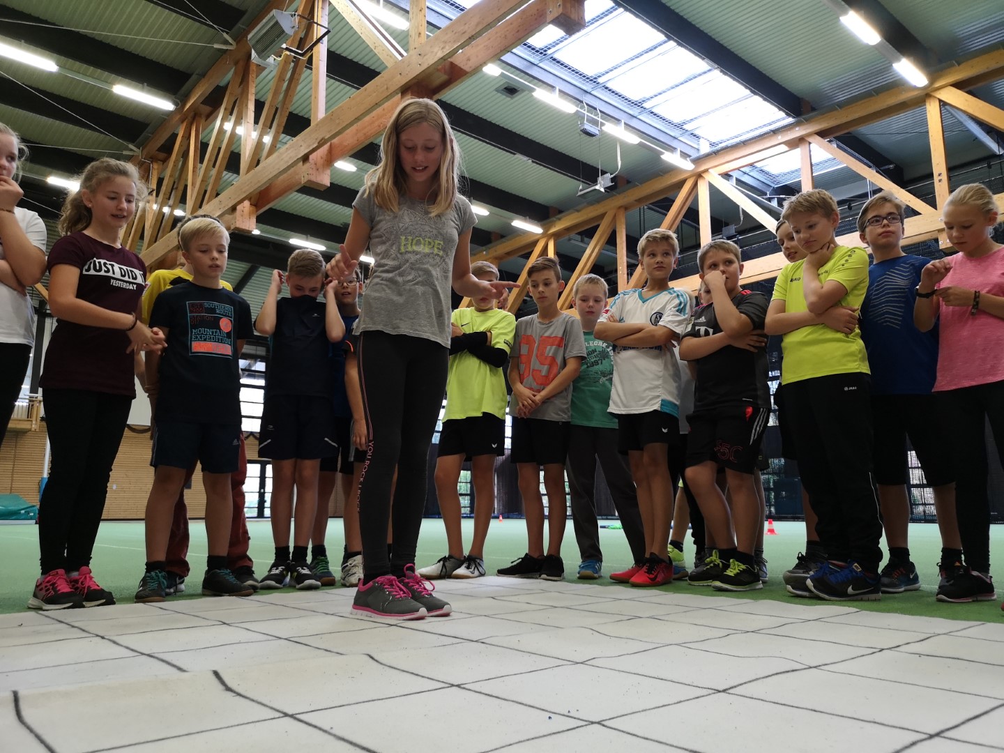 Im Anschluss hatten alle Kinder im nahe gelegenen Ahorn-Sportpark die Gelegenheit, sich in verschiedenen – etwas anderen – Teamspielen zu beweisen und Aufgaben gemeinsam zu lösen.