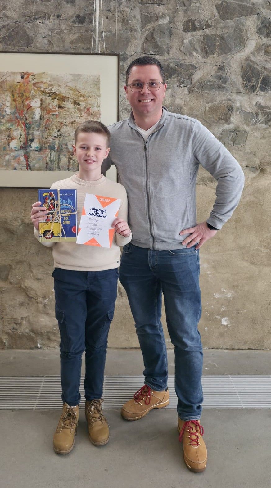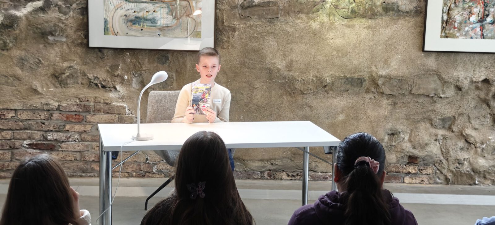 Hier trat er gegen eine teils starke Konkurrenz von über 10 Teilnehmerinnen und Teilnehmer verschiedener Schulen aus dem HSK an: Neben einer 3-minütigen selbst gewählten Textstelle aus einem eigenen Buch bestand die zweite Disziplin aus einem spontanen Vortrag einer unbekannten Textstelle aus „Captain Hook“. Neben der Lesetechnik wurde auch die Interpretation des Gelesenen von vier Juroren bewertet, bevor die Kreissiegerin ermittelt wurde.